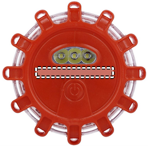 5 ledin huomiovalo, usealla valoasetuksella. Tasainen valo, valo tuotteen päällä, pyörivä valo, vilkkuva valo. Kumilla päällystetty päällä/pois kytkin, takan magneetti ja sisääntaitettava haka. Patterit eivät sisälly toimitukseen.