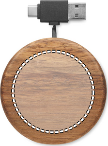 Langaton laturi, jossa on sisäänvedettävä kaapeli, akaasiapuuta. Liitä laite tietokoneeseen, aseta älypuhelin sen päälle ja anna sen latautua. Lähtö: DC 9V/1.67A (15W). Yhteensopiva kaikkien QI-yhteensopivien laitteiden kanssa, kuten uusimmat Androids, iPhone® 12, X ja uudemmat.