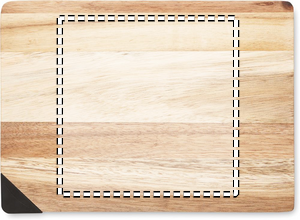 Akaasiapuusta valmistettu leikkuulauta, jossa on veitsenteroitin.