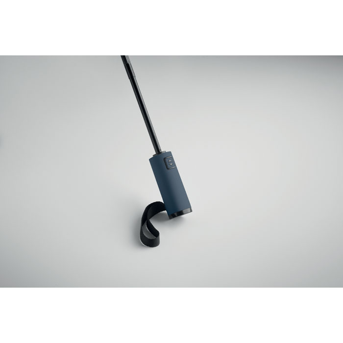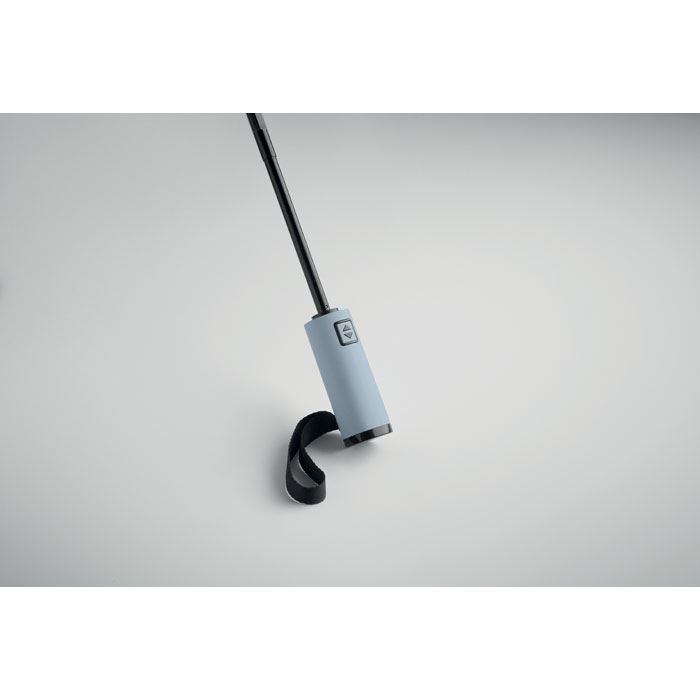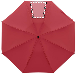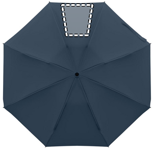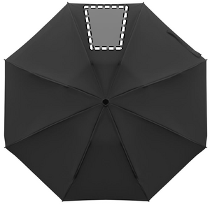 23” 3-osainen käänteinen tuulenpitävä sateenvarjo 190T RPET-pongeesta, mukana suojapussi. Automaattinen avaus ja sulku, täysin musta pinnoitettu runko, lasikuituruoteet ja kumipintainen ABS-kahva.