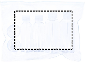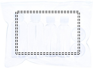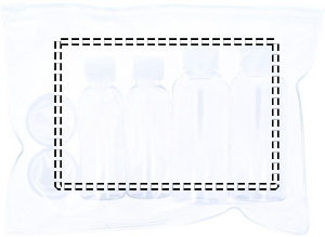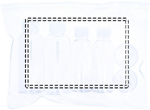 Lentomatkustuspussi, 6 tyhjää pulloa. ( 100 ml, 50 ml, ja 10 ml)