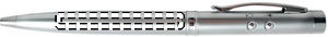 Monitoimi kuulakärkikynä sinisellä musteella, sisältää valkoisen LED-valon ja punaisen laserosoittimen. Pakattuna puulaatikkoon, sisältää kolme LR41 patteria.