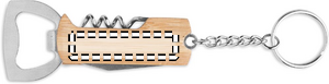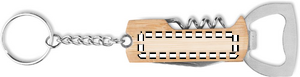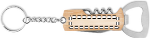 3 in 1 taskutyökalu bambukotelolla ja avainrenkaalla. Sisältää pullonavaajan, korkkiruuvin ja taskuveitsen.