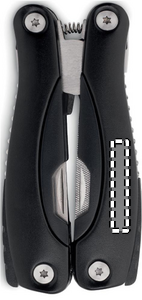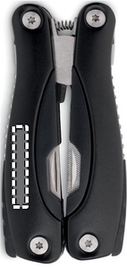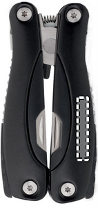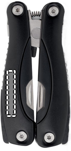 Kokoontaitettava monitoimityökalu ruostumattomasta teräksestä, sisältää 9 työkalutoimintoa ja 600D polyesteripussin.