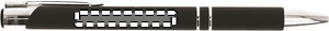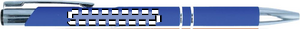 Painomekanismilla toimiva kuulakärkikynä sinisellä musteella, kuminen viimeistely.