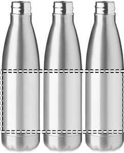 Kaksiseinäinen ruostumattomasta teräksestä valmistettu termospullo, jossa on kahvallinen korkki. Tilavuus 500 ml. Vuotamaton.