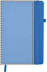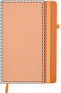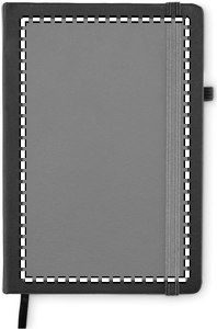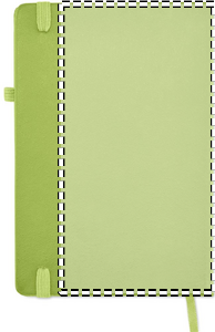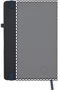 A5-muistikirja, jonka kannet on valmistettu kierrätetystä PU- materiaalista. 192 viivoitettua sivua kierrätyspaperia (96 arkkia). Kiinnitys puuvillanauhalla, kirjanmerkki ja kynänpidike kuminauhalla.