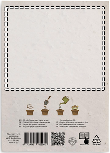 Niittykukkien siemeniä kierrätyspaperista valmistetussa A6 arkissa (80 gr/m²). Valmistettu EU:ssa.