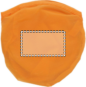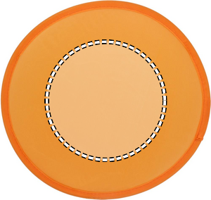 Taitettava frisbee pussissa, molemmat tuotteet valmistettu polyesteristä.