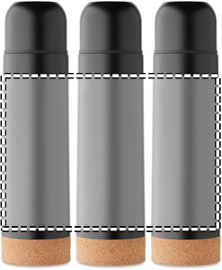 Kaksiseinäinen tyhjiöeristetty pullo kierrätetystä ruostumattomasta teräksestä, pullossa on korkkipohja. Vuotamaton. Tilavuus: 500 ml. (90 % kierrätettyä ruostumatonta ja 10 % ruostumatonta terästä).