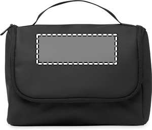 Pehmeästä PU-muovista valmistettu kosmetiikkalaukku, jossa ripustuskoukku ja 210D RPET-vuori. Yksi suuri päälokero, jossa vetoketjullinen verkkotasku ja yksi verkkotasku.
