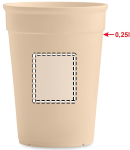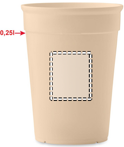PP:stä valmistettu uudelleenkäytettävä yksiseinäinen kahvimuki. Tilavuus: 250 ml.