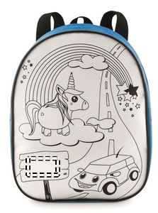 600D- polyesterinen lastenreppu, sisältää 5 värikynää.