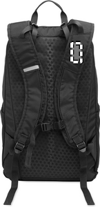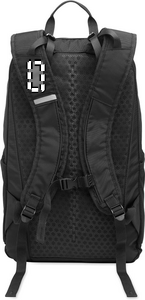 Retkeilyreppu 18L vettä hylkivää 420D nylonia, jossa on heijastava raita. Siinä on lokero 15'' ''tietokoneelle. Yksi vetoketjullinen etulokero ja yksi edessä oleva liukutasku, jossa on solkisuljenta. Kaksi sivutaskua. Pehmustetut selkä- ja olkahihnat.