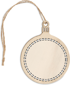 Puinen MDF ympyrän muotoinen kuusenkoriste juuttilankaripustimella. Luonnollisen materiaalin (MDF) vuoksi, tuotteiden värissä/ koossa saattaa olla erinäisyyksiä ja tämä voi vaikuttaa painatuksen lopputulokseen.
