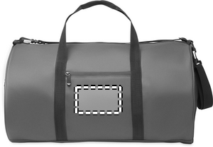 Duffelilaukku 600D RPET -polyesteriä PU-pinnoitteella. Vetoketjullinen etutasku. Sisällä 210D RPET -polyesterivuori. Yksi vetoketjullinen sivutasku / yksi sivuverkkotasku. Vetoketjullinen sisätasku.