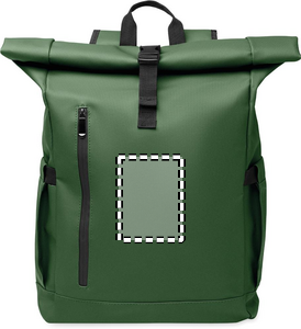 Rullattava 15-tuumainen läppärireppu PU-päällysteisestä 600D RPET-polyesterikankaasta ja RPET-polyesterivuorilla. Pehmustettu verkkoselkänoja, vetoketjullinen tasku ja olkahihna. Pehmustettu olkahihna, jossa verkkovuori.