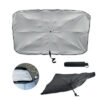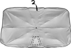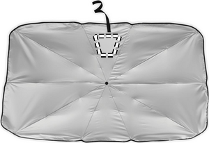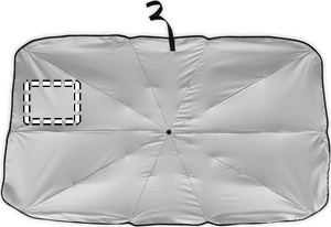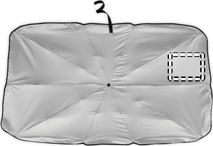 Tuulilasin aurinkovarjo 190T pongee-materiaalista, jossa on toisella puolella. Manuaalinen avaaminen/sulkeminen.