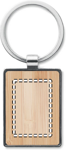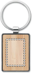 Neliön muotoinen avaimenperä sinkkiseoksesta ja bambu yksityiskohdalla. Luonnollisen materiaalin (bambu) vuoksi, tuotteiden värissä/ koossa saattaa olla erinäisyyksiä ja tämä voi vaikuttaa painatuksen lopputulokseen.