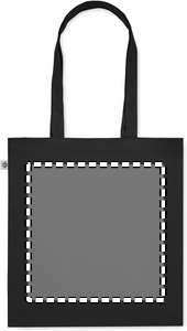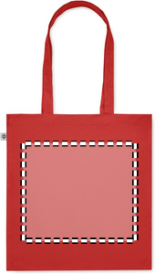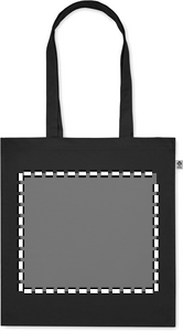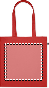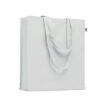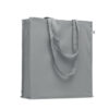 Luomupuuvillasta valmistettu ostoskassi, jossa on pitkät kahvat ja sivutaitteet. 220 gr/m².