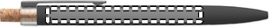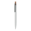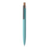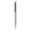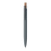 Kierrätysalumiinista valmistettu kuulakärkikynä, jossa on korkkipainike ja metalliklipsi . Sininen muste.