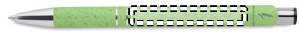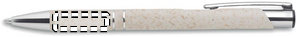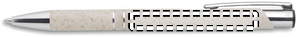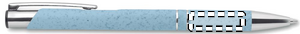 Kuulakärkikynä sinisellä musteella, 50% vehnän olkea ja 50% ABS-muovia hopeaisilla yksityiskohdilla.