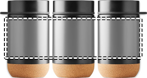 Kaksiseinäinen ruostumattomasta teräksestä valmistettu säilytyspurkki, jossa on kierrekansi ja korkkipohja. Sisältää lusikan. Tilavuus 400 ml.