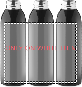 Yksiseinäinen ruostumattomasta teräksestä valmistettu juomapullo, jossa PP-korkki ja silikonilenkki. Tilavuus: 650 ml.