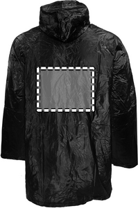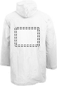 PVC-sadetakki hupulla ja painonappikiinnityksellä.