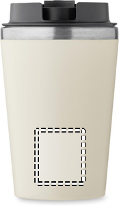 Kaksiseinäinen termosmuki, ulkopinta PP, sisäpinta on kierrätettyä ruostumatonta terästä (90 % kierrätettyä ruostumatonta terästä ja 10 % ruostumatonta terästä) jossa on keraaminen pinta. Vuotamaton. Tilavuus: 350 ml.