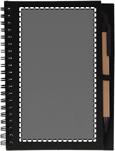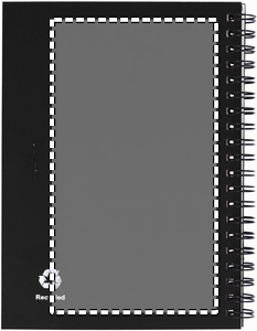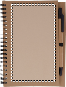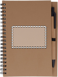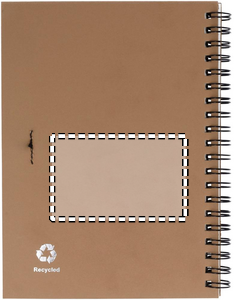 Kierrätetty muistikirja, mustalla tai luonnonruskealla kannella. Sisältää 120 sivua kierrätyspaperia (70 arkkia) ja biohajoavan kierrätetyn kuulakärkikynän sinisellä musteella. FSC MIX CREDIT | P7.1 | FSC-C213206