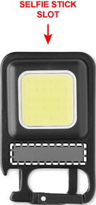 COB-taskulamppu, USB-ladattava. Valo 800 lumenia. 3 valaistustilaa. Ripustettava karabiinikoukku.