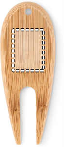 Bamboo golf divot tool. Keep the green in perfect condition with this divot tool made from bamboo. With this tool you can easily remove and hide ball marks on the green. Bamboo is a natural product, there may be slight variations in colour and size per item, which can affect the final decoration outcome.