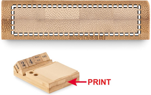 Bambusta valmistettu pöytäkalenteri, jossa on puhelimen pidike, 2 kynätelinettä ja 50 arkkia muistiinpanosivuja. FSC®-certified | FSC 100%, N5.7, FSC-C213206.