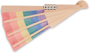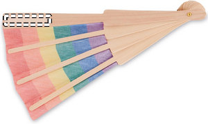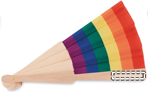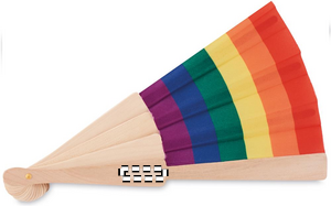 Manual rainbow hand fan made from wood and polyester fabric. This cheerful and colourful hand fan will keep you cool during those hot summer days. Wood is a natural product, there may be slight variations in colour and size per item, which can affect the final decoration outcome.