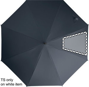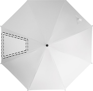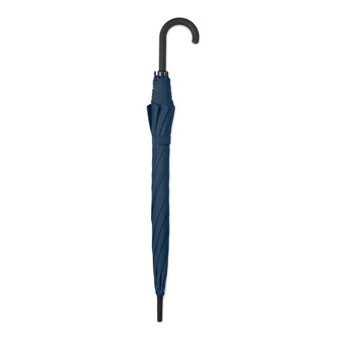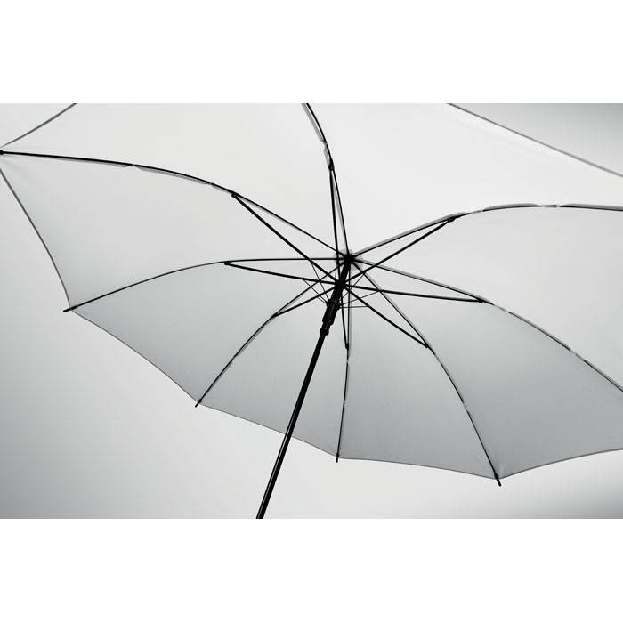 23 tuuman suora, automaattisesti avautuva sateenvarjo, jossa on mustaksi pinnoitettu metallirunko, lasikuituiset ruoteet ja paneelit 190T pongee-kankaasta. Muoviset kärjet ja yläosa. Kumipäällysteinen PP-muovista valmistettu kaareva kahva. Manuaalinen sulkeminen.
