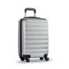 ABS- muovinen 20 tuuman kovakuorinen, sisältää turvalukon. Alla 4 pyörää.