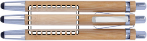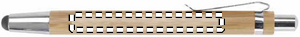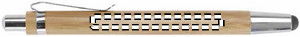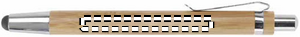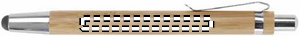 Bambusta valmistettu kuulakärkikynä sinisellä musteella ja kosketusnäyttöpäällä, krominväriset yksityiskohdat.