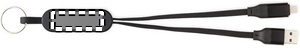 60W kaapeli kierrätetyssä ABS-kotelossa, jossa on avaimenperä ja puhelinteline. Tulo: 2-in-1 Type-C ja Type-A. Lähtö: Type-C ja micro-B (2 in 1 pin). Kaapelin pituus: 26 cm.