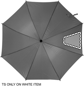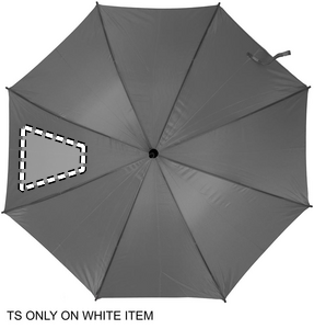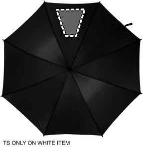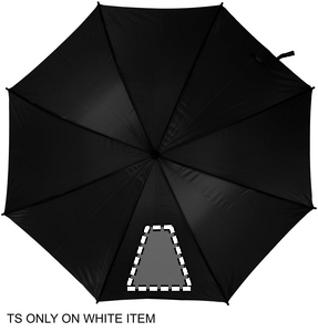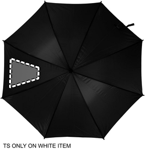 Manuaalisesti toimiva 23 tuuman sateenvarjo, 190T polyesteriä. Puinen varsi, kärjet ja yläosa. Mustat päällystetyt metallisissa ruoteissa, kaareva puukahva ja manuaali suljin.