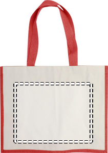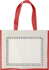 Laminoitu juuttikassi pitkillä kahvoilla, puuvilla vyötteellä ja canvas yksityiskohdilla. Tämä tuote on OEKO-TEX® STANDARD 100 -sertifioitu.