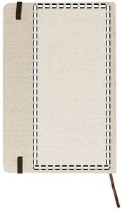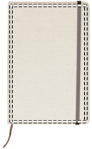 A5 muistikirja, 192 viivoitettua sivua (96 arkkia) ja canvas kansi. Sisältää kuminauhan ja kirjanmerkin.