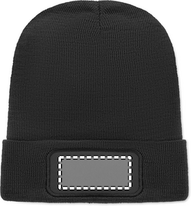 Unisex-neulottu pipo pehmeästä, joustavasta RPET-polyesteristä, jossa on taite ja kangasmerkki painatusta varten.