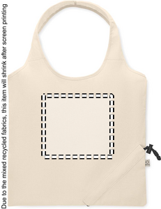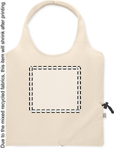 Kierrätetty esikulutettu puuvillainen kokoontaitettava ostoskassi (70 % kierrätettyä puuvillaa ja 30 % RPET:tä). 140 gr/m².