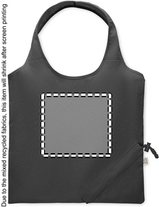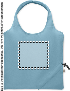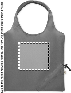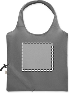 Kierrätetty esikulutettu puuvillainen kokoontaitettava ostoskassi (70 % kierrätettyä puuvillaa ja 30 % RPET:tä). 140 gr/m².