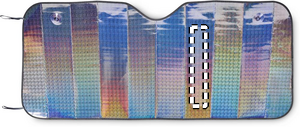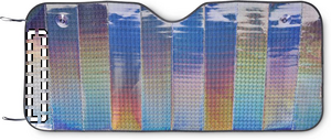 Taitettava tuulilasin aurinkosuoja. Vaahtomuovi 2mm ja PE-alumiinifolio.