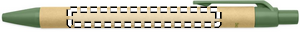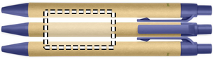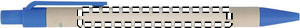 Painomekanismilla varustettu kuulakärkikynä sinisellä musteella, paperisella rungolla ja muoviosat polyaktidia (100% biohajoavaa maissia).