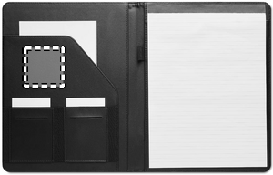 A4 size portfolio in 2 tone 300D RPET. Keep all your work organized in this useful office essential. It has inner compartments and a loop to store your pen or pencil. It includes a 20 sheets lined notepad. The cover is made from recycled PET material.