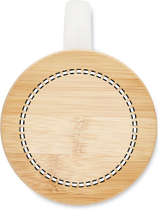 Kierrätyslasimuki bambukannella. Tilavuus: 300 ml.