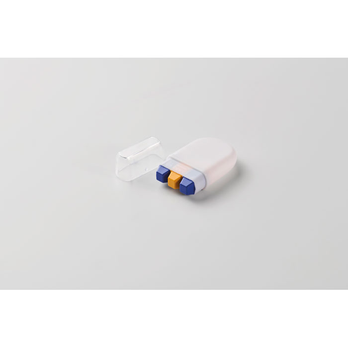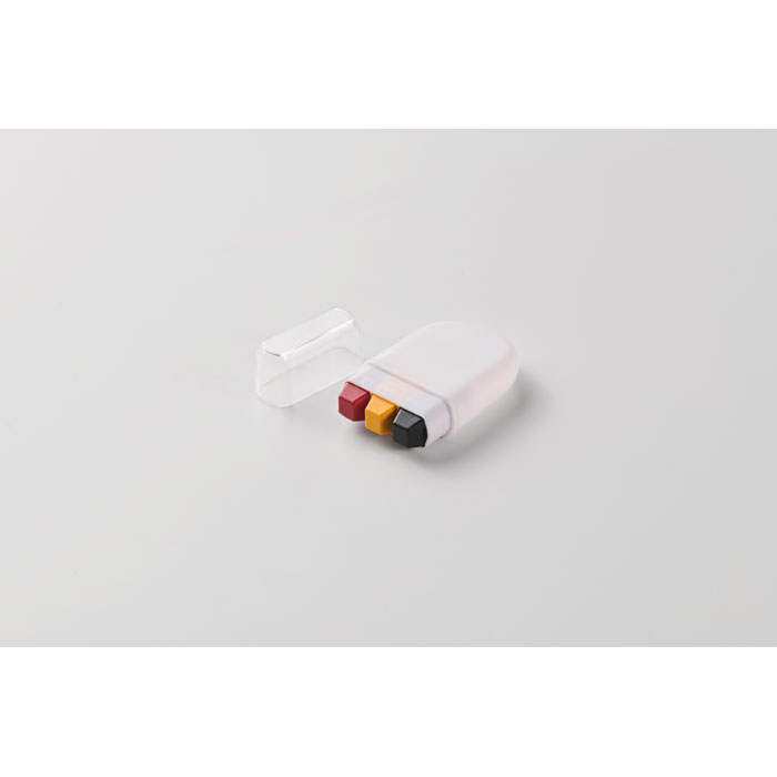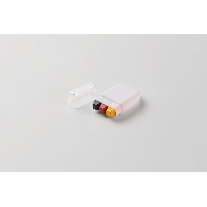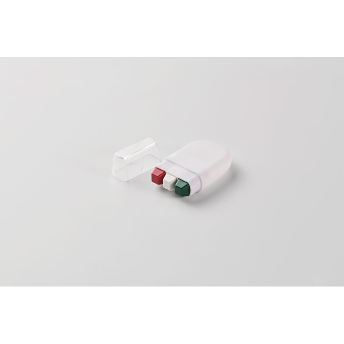 Maalaa vartalolle kansallisen lipun väreissä vahamaalilla PP-kotelossa ja PS-kannessa.